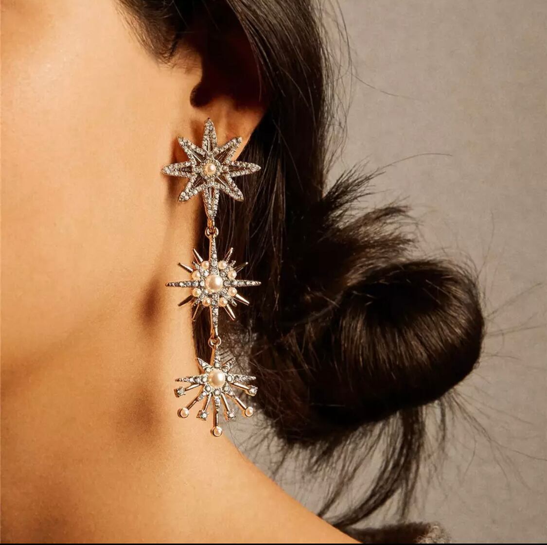 スターモチーフパールピアス クリスタルドロップゴールドシルバージュエリーヴィンテージ