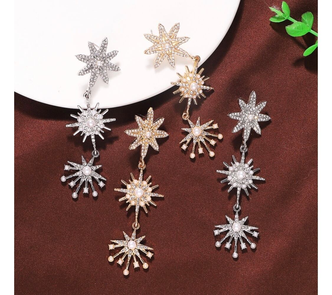 スターモチーフパールピアス クリスタルドロップゴールドシルバージュエリー