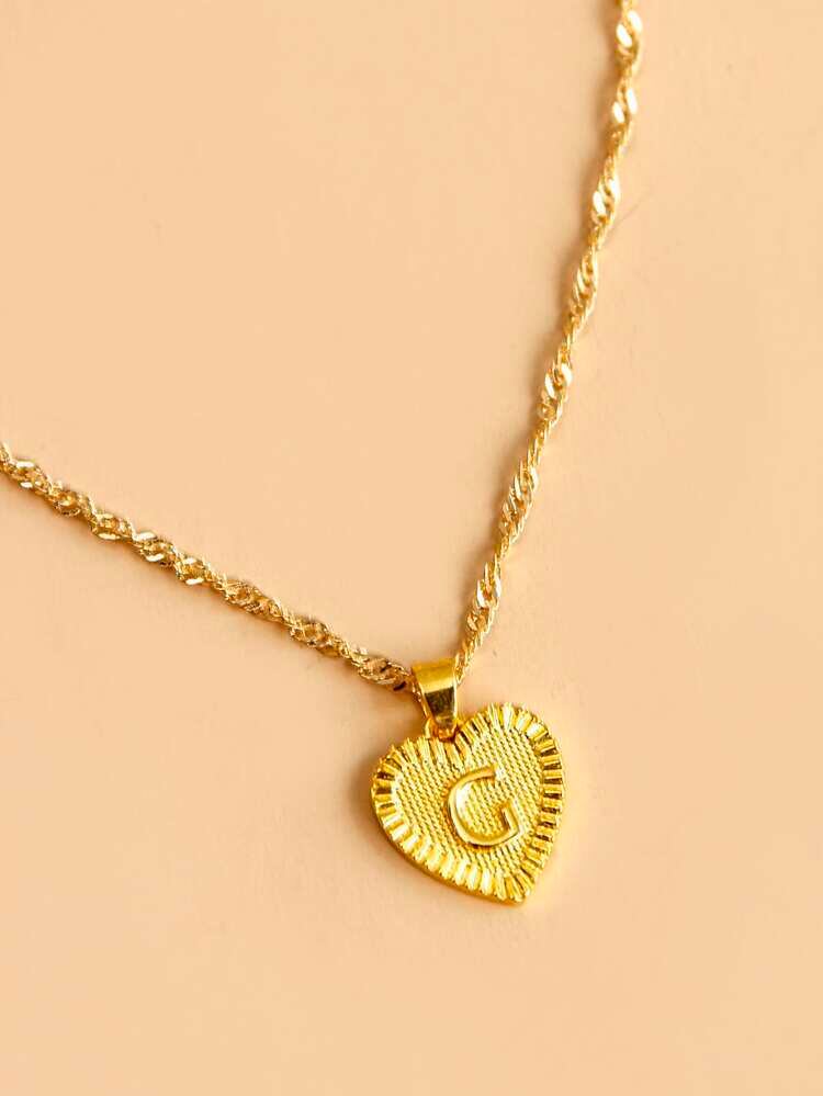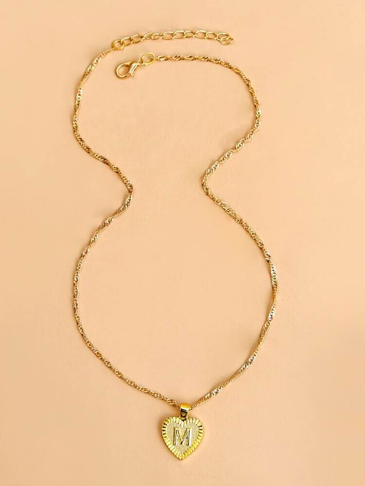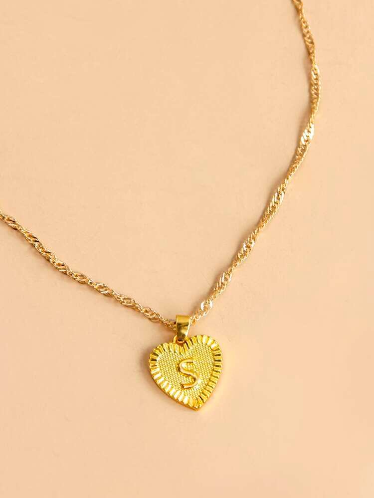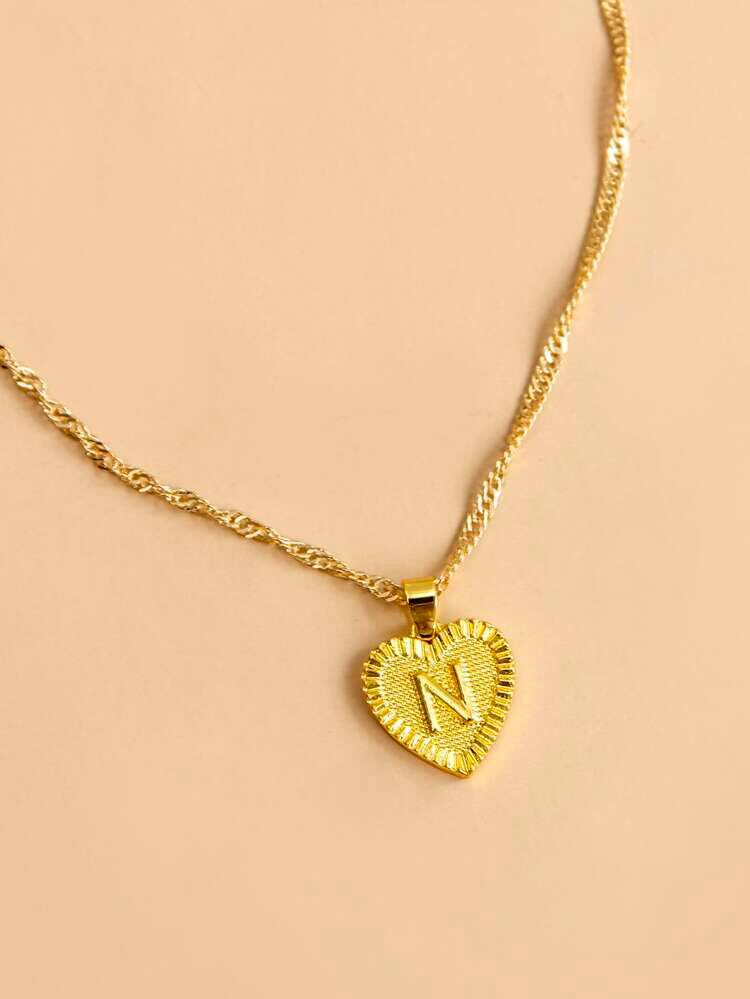 ハート型ステンレス イニシャルペンダントネックレス initial チャーム