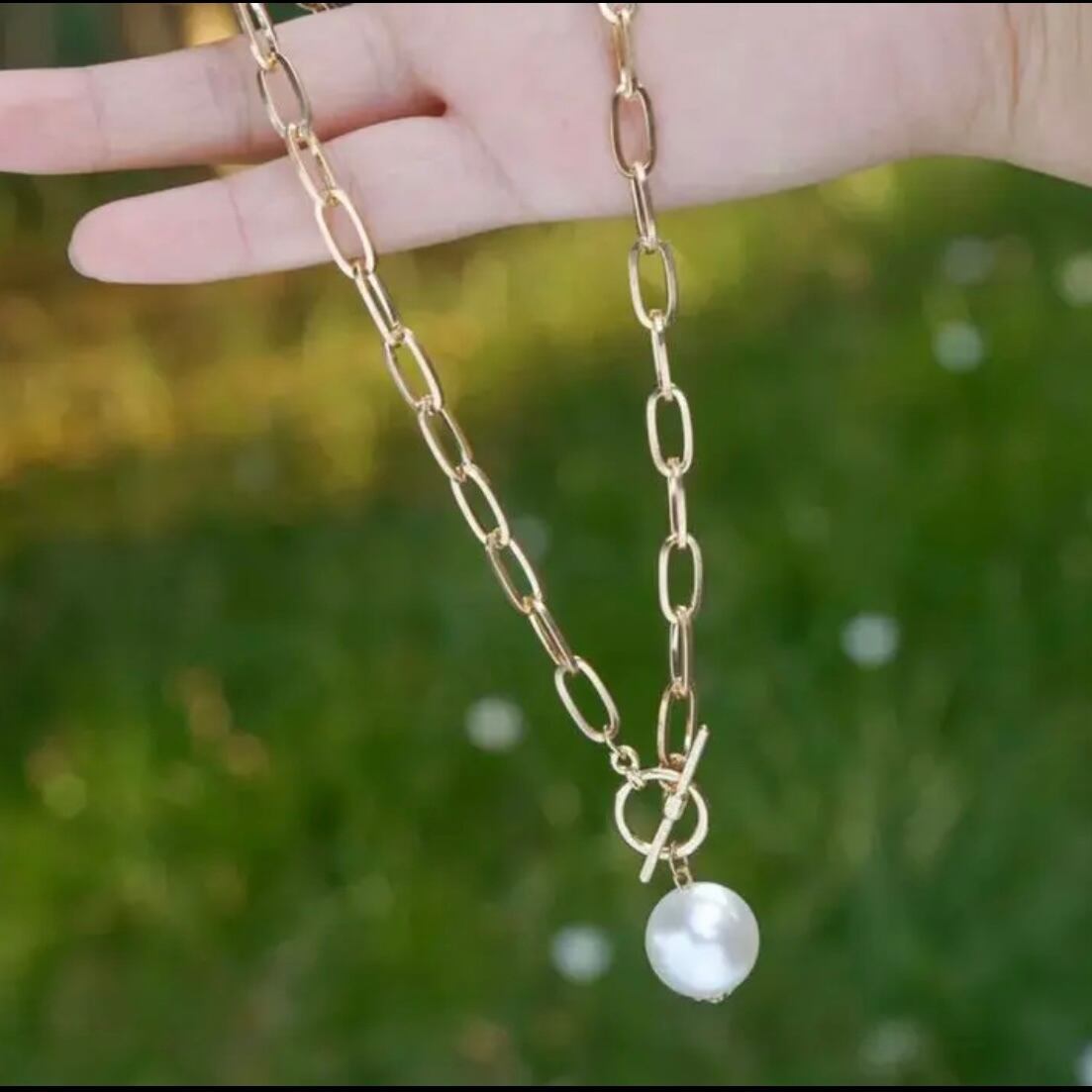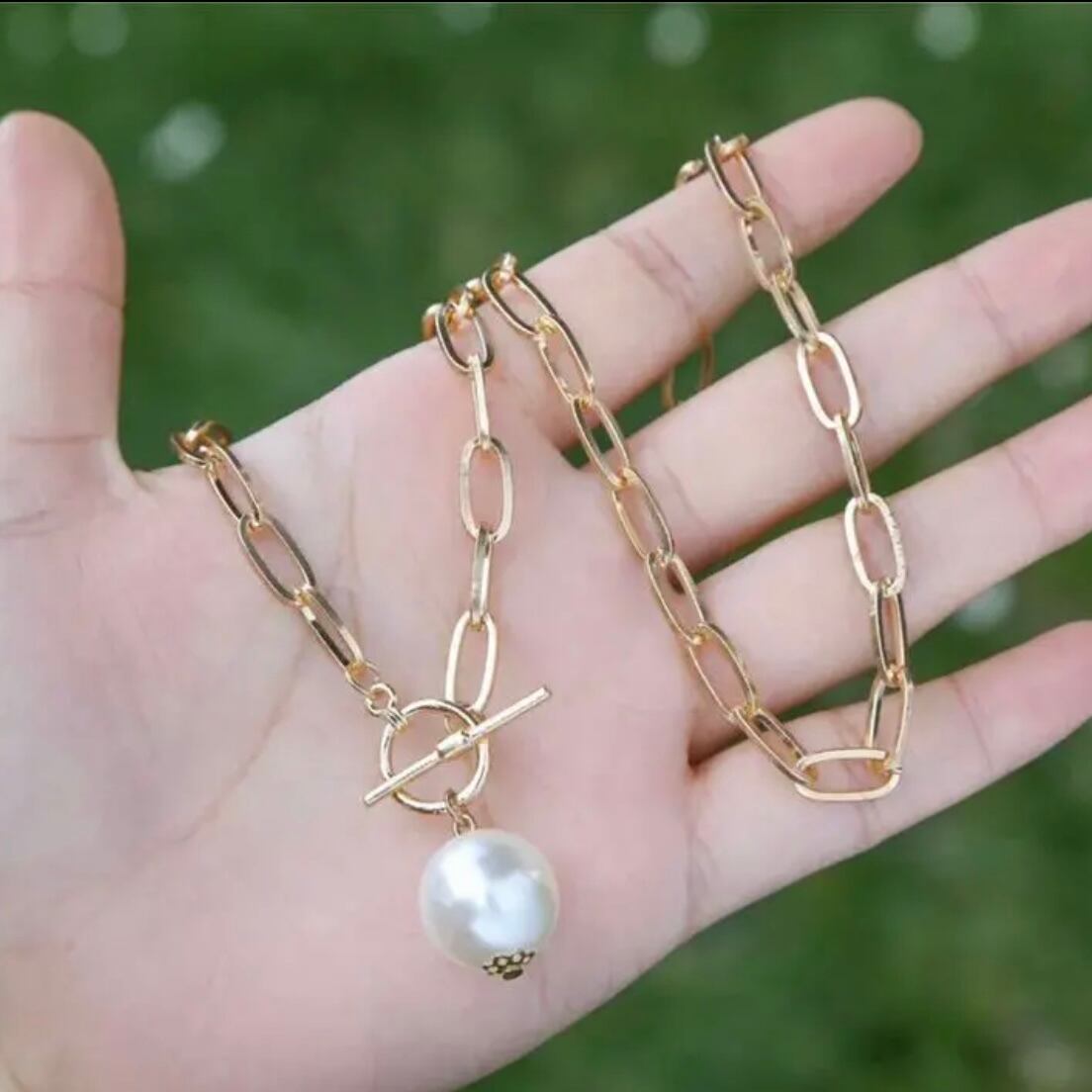 パールチェーンネックレス インポートアクセサリー バロックチャームチョーカー