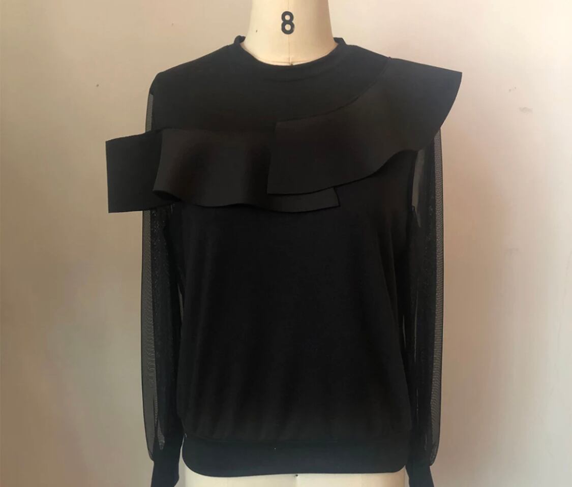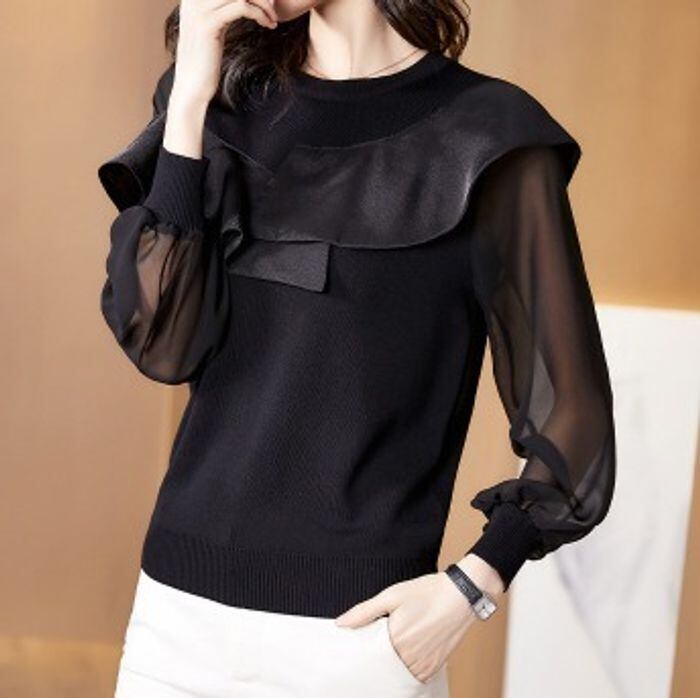 シースルーフリル ニットカットソー シアー オーガンジー切替