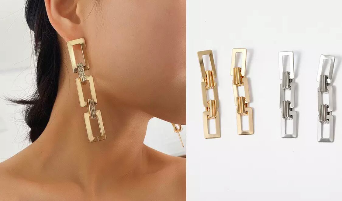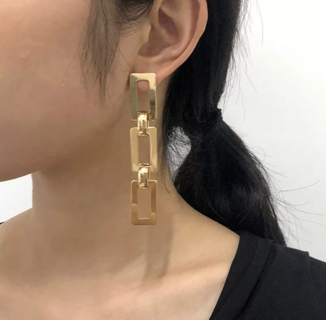 ゴールドスクエアプレート バロックビックピアス イヤーカフスイヤリングジュエリー