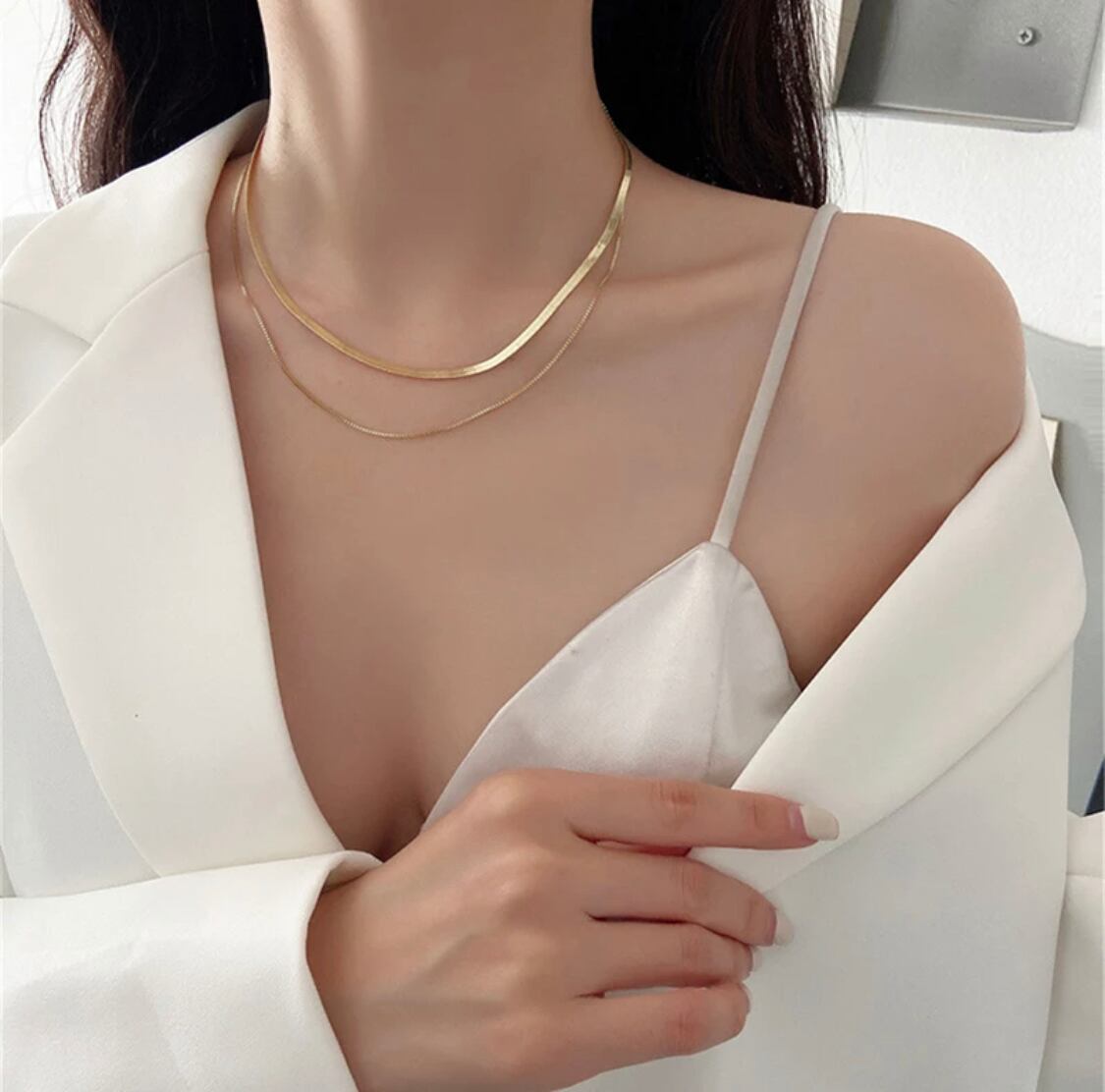 2本セット フラットブレード スネークチェーンチョーカーネックレスヴィンテージ2