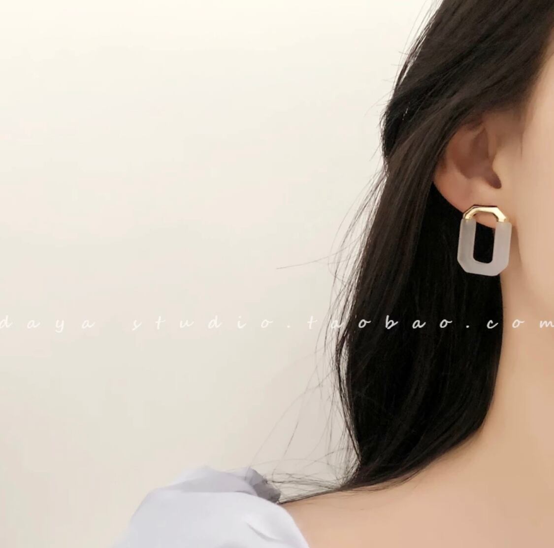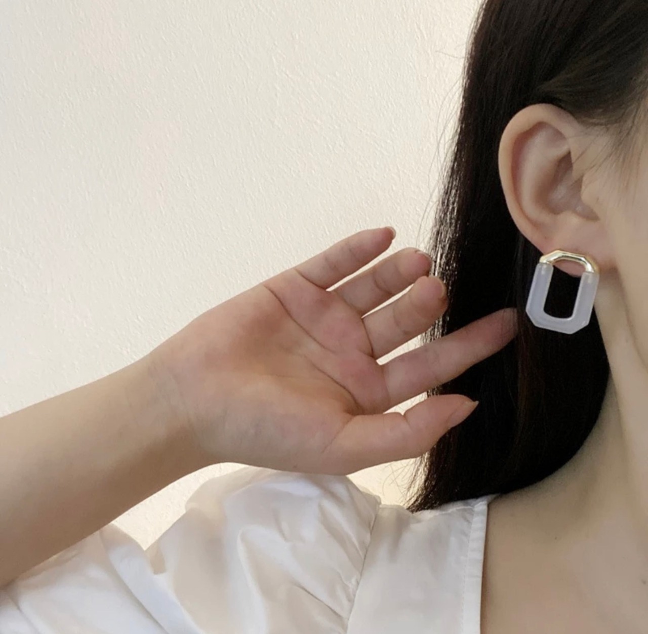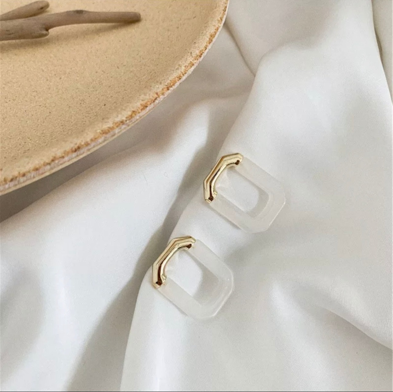 スクエアフォルムに透明感のあるストーンをあしらい、洗練されたスタイリングが楽しめます。