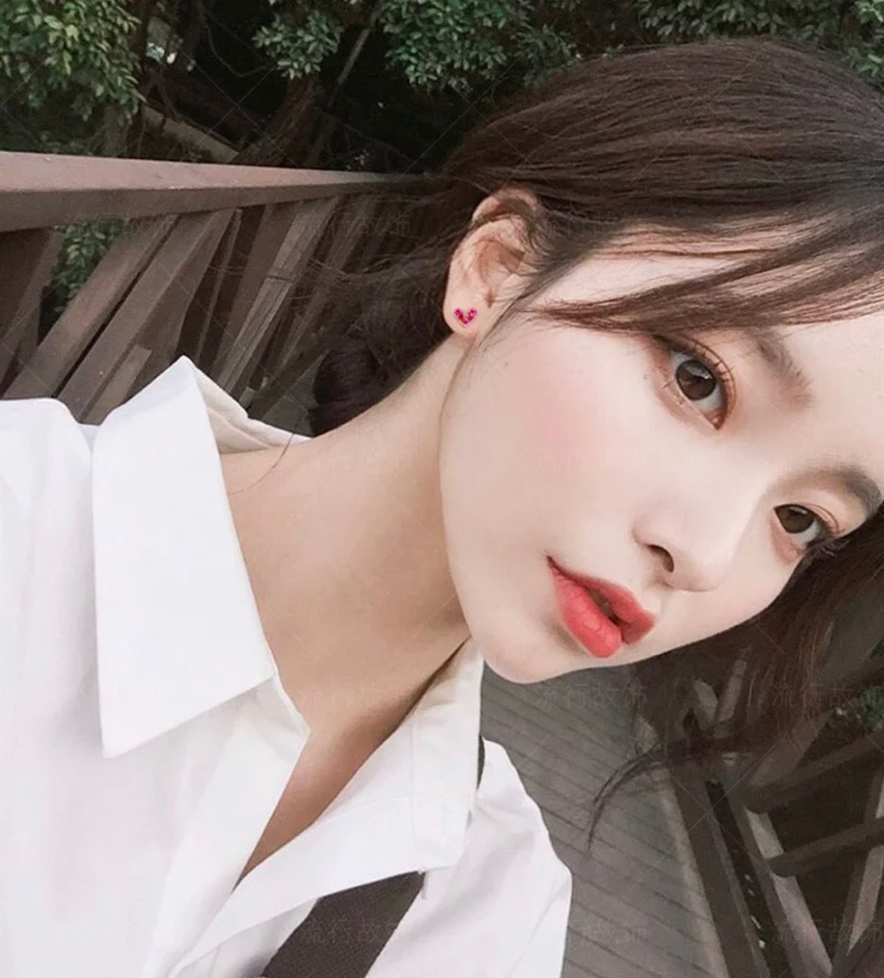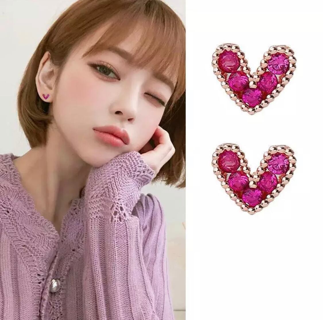 ピンクハートジルコンラインストーン キュートピアス イヤリング テリちゃん着用