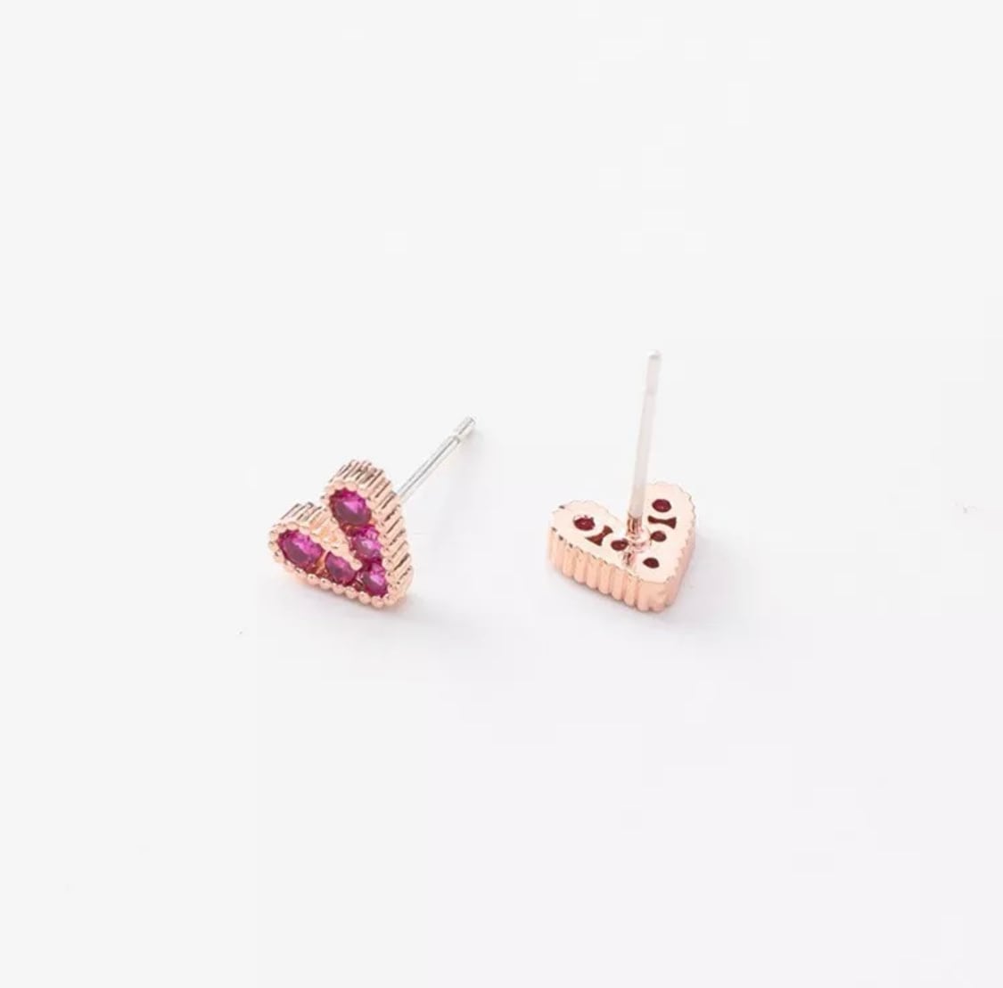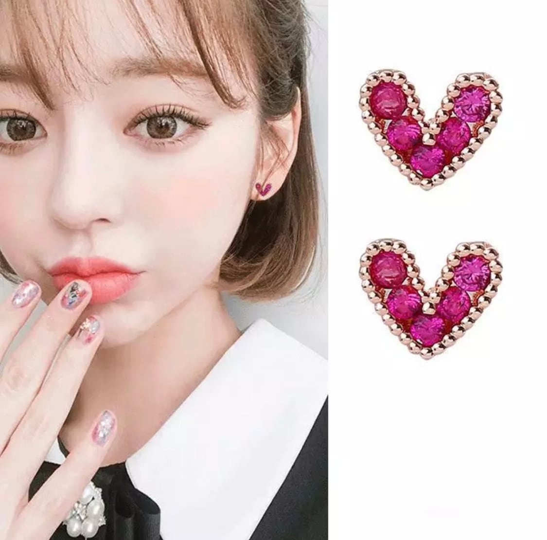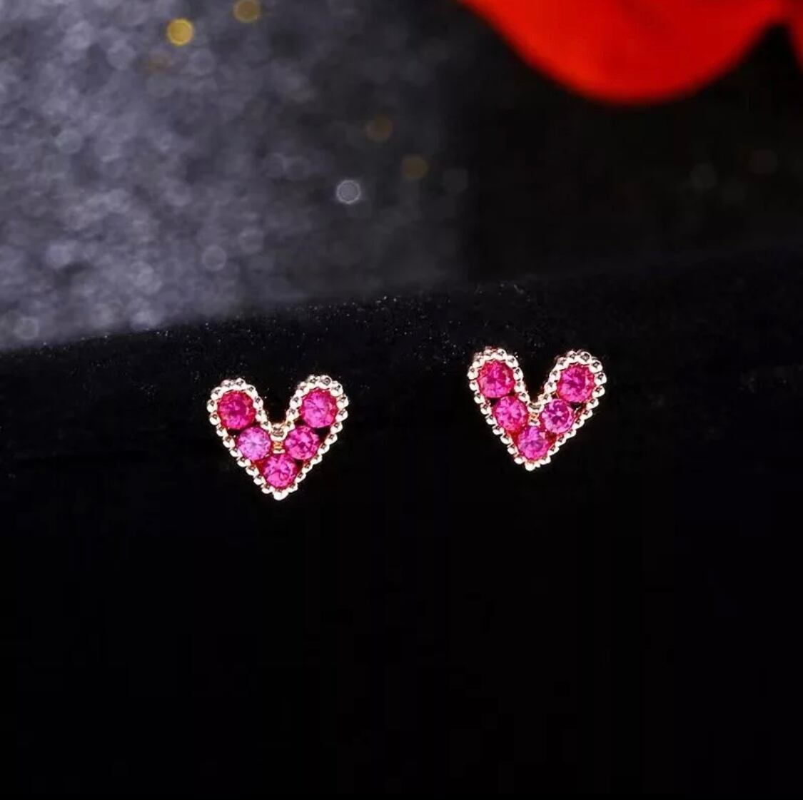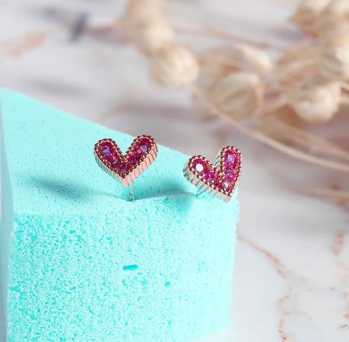 人気モチーフのハートには鮮やかなルビーカラーのストーンが埋め込まれていて、耳元を可愛く魅せてくれるアイテムです♪