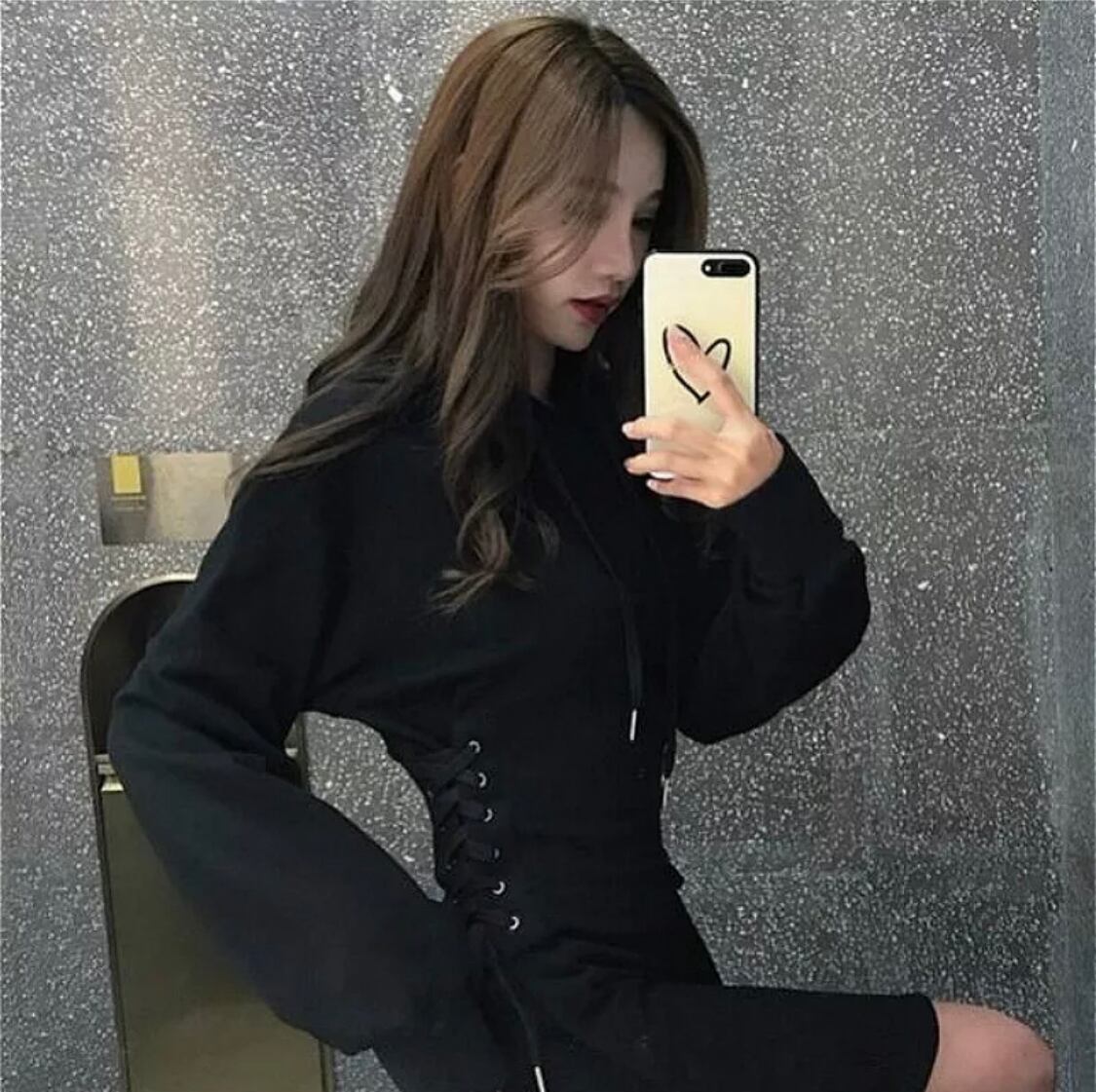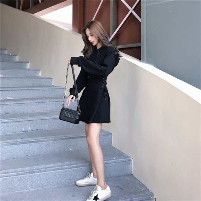 フード付き レースアップ ミニパーカーフードワンピース