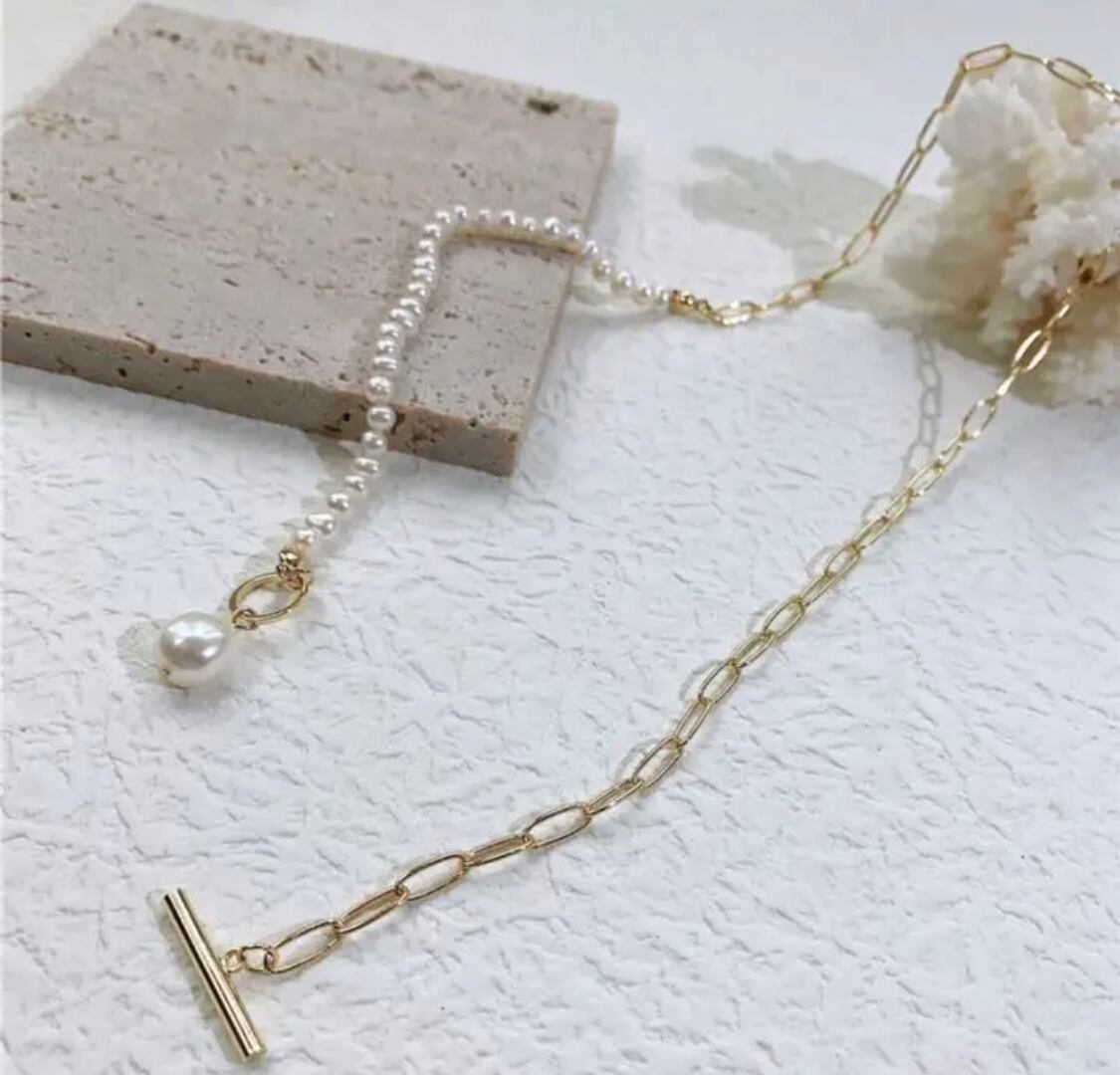 【予約商品】バロックパールチェーンネックレス インポートアクセサリー チャームチョーカー