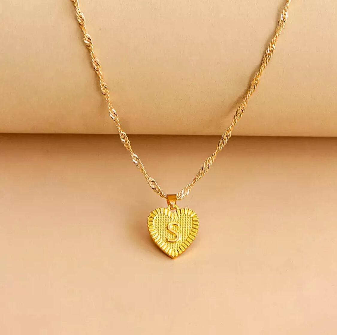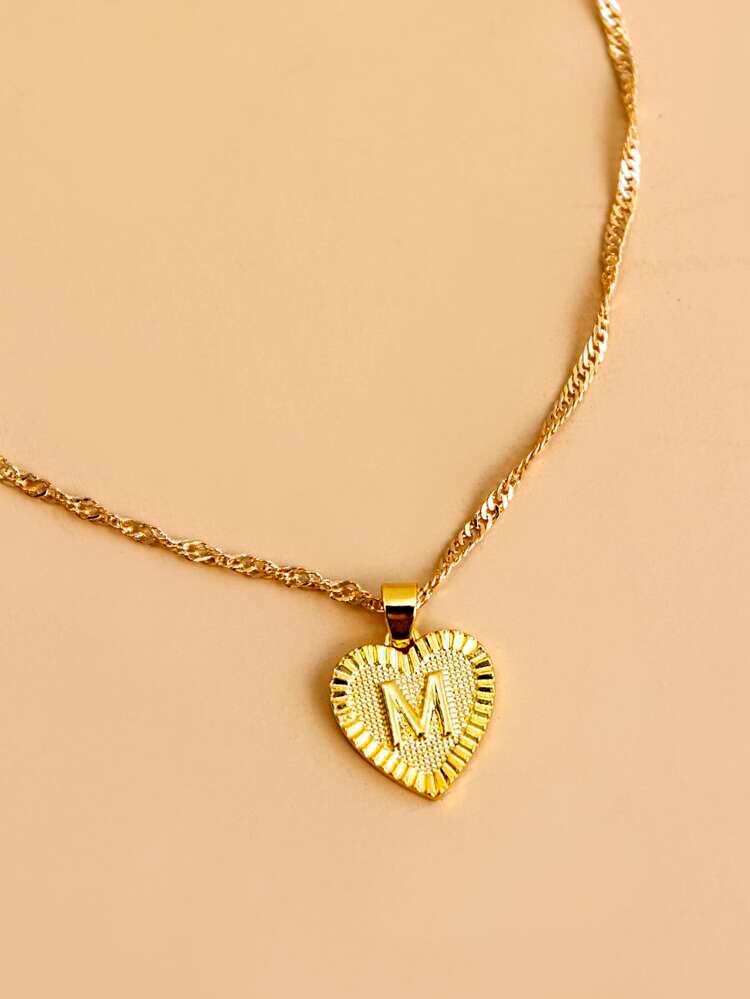 【予約商品】ハート型ステンレス イニシャルペンダントネックレス initial チャーム